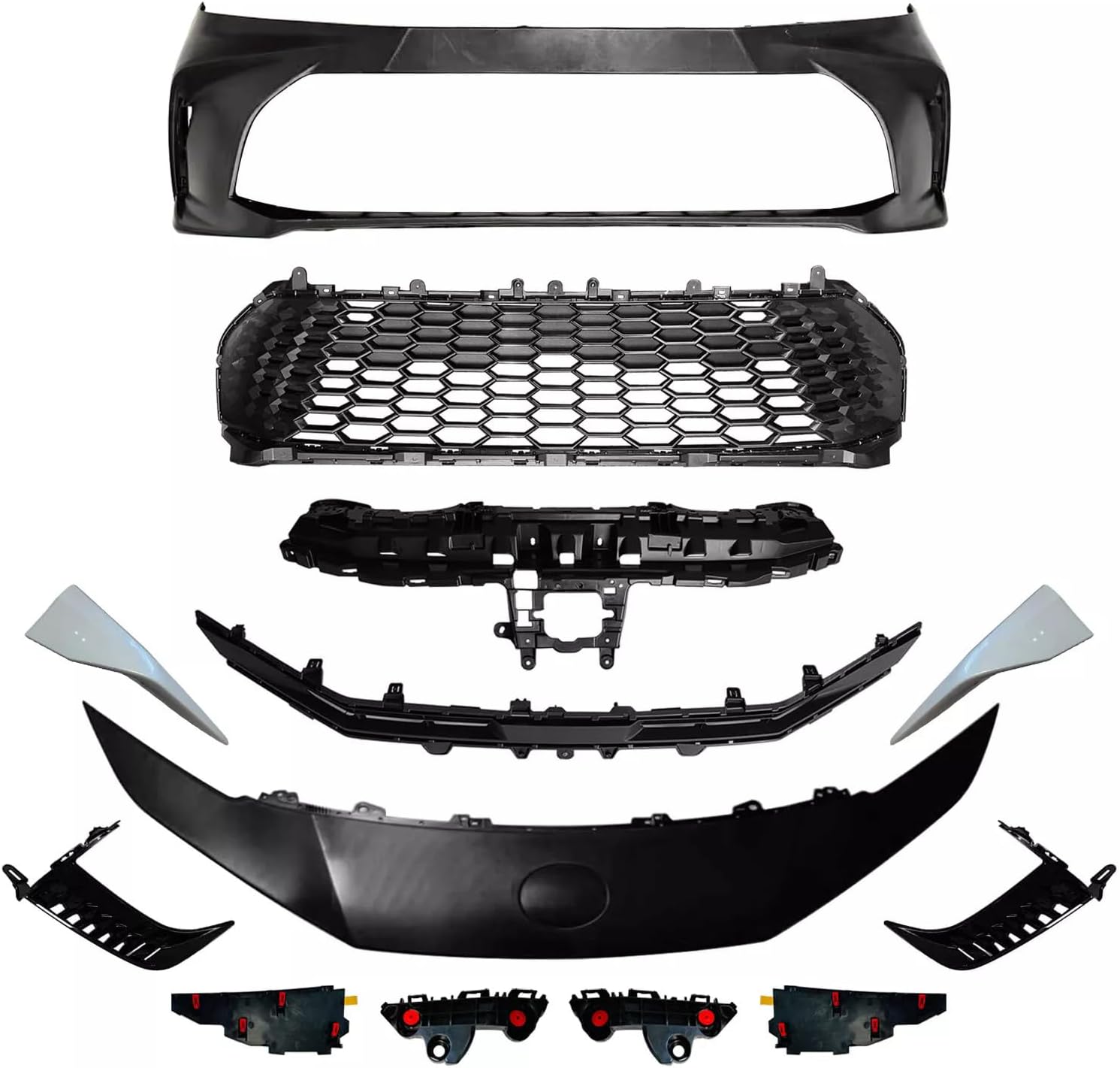 - 【Package including 】- 1x Front Bumper Cover Without Parking Assist Sensor Holes Predrilled, Unprimed & Unpainted,1x Front Upper Cover Molding Without Logo Emblem,1x Center Grille Upper Filler Garnish & Inner Bracket,1x Black Lower Radiator Grille,2x Side Vent Cover,2x Side Bumper Retainer,2x Front Bumper Retainer,2x Lower Bumper Corner End Molding Trim.