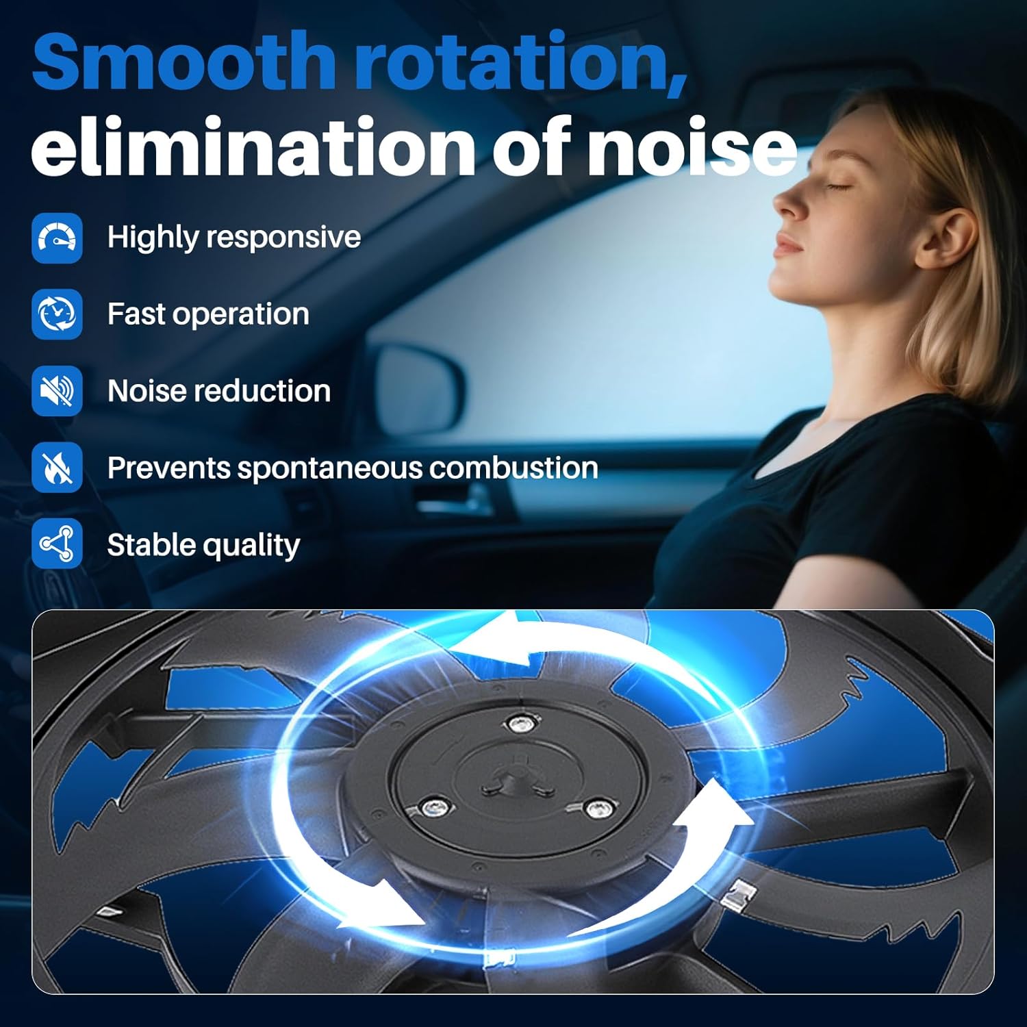 - Material: Cooling fan for radiator made of high quality ABS and high quality metal material, durable. Curved blade for long life.