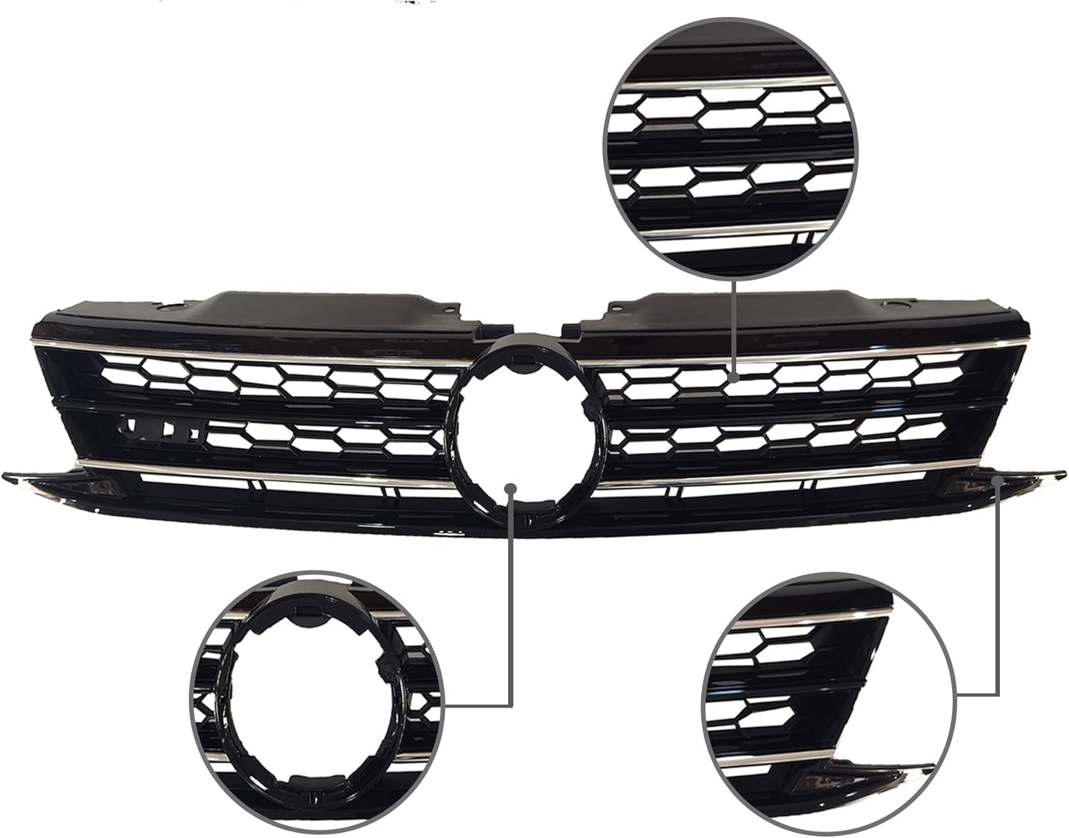 - COMPATIBILITY: Front Bumper Grille Black Honeycomb Grill With Chrome Trim Compatible With 2015-2017 Volkswagen VW GLI