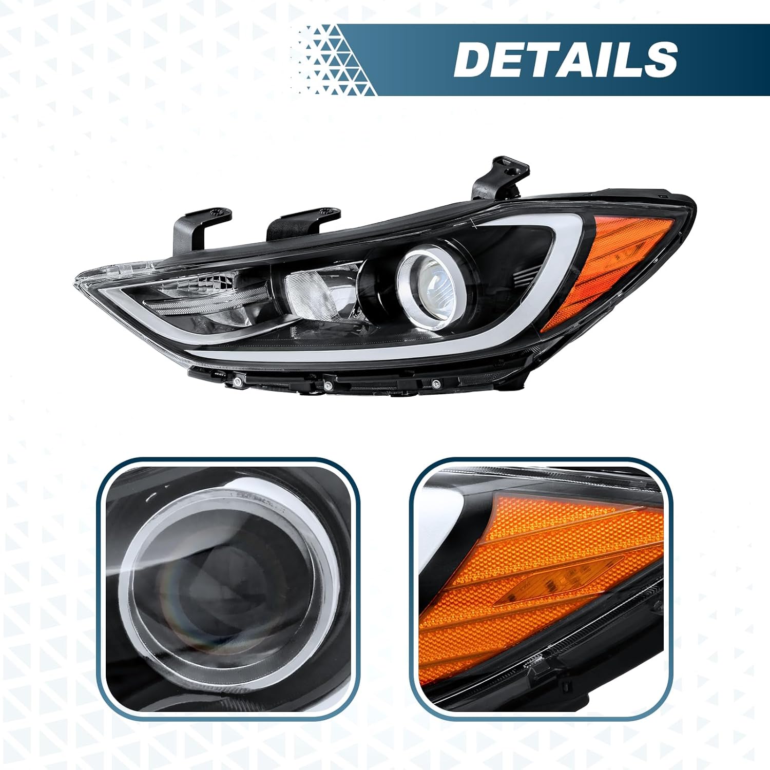 - Fitment: This headlight assembly fits for 2017 2018 Hyundai Elantra Front Bumper Halogen Headlight Headlamp (Compatible without DRL Halogen Headlight Only).