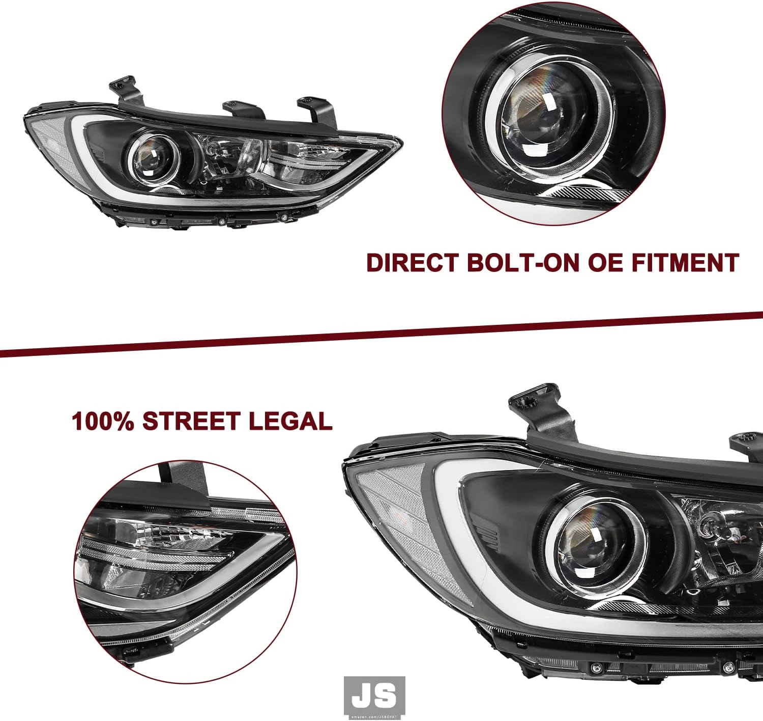 Headlight Assembly Compatible with 2017 2018 Hyundai Elantra Left and Right Side OE Style, Only Fits Halogen NON-DRL Models,